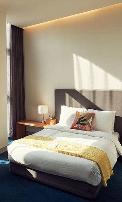 차분한 분위기의 객실 환경으로 안정적인 컨디션을 유지할 수 있습니다. 가벼운 업무 처리가 가능한 책상이 있어 객실에서도 효율적인 업가 가능합니다.