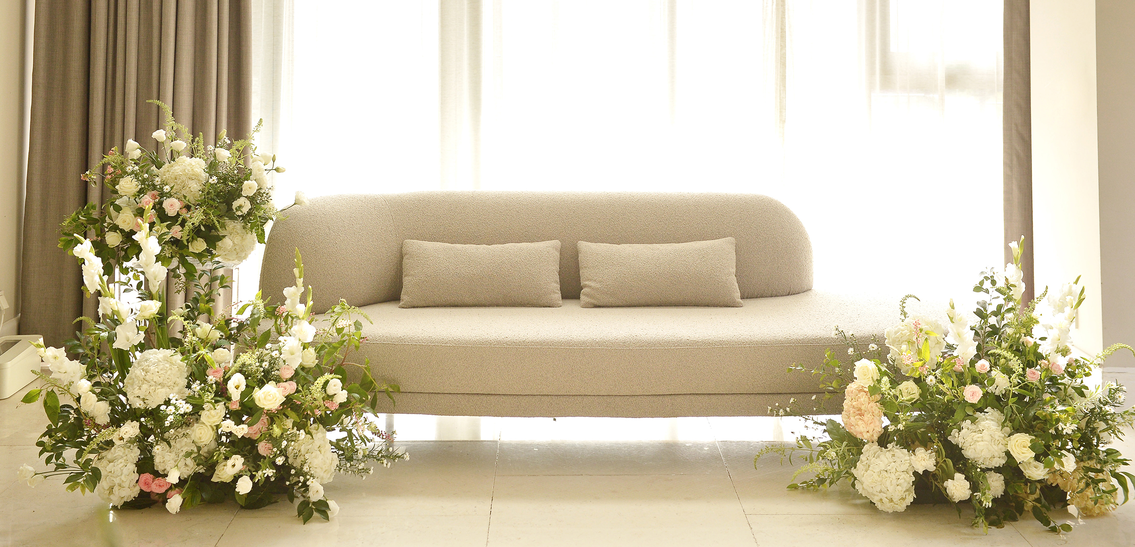 풍부한 자연광, 전문가의 손길로 완성된 아름다운 플라워 데코,